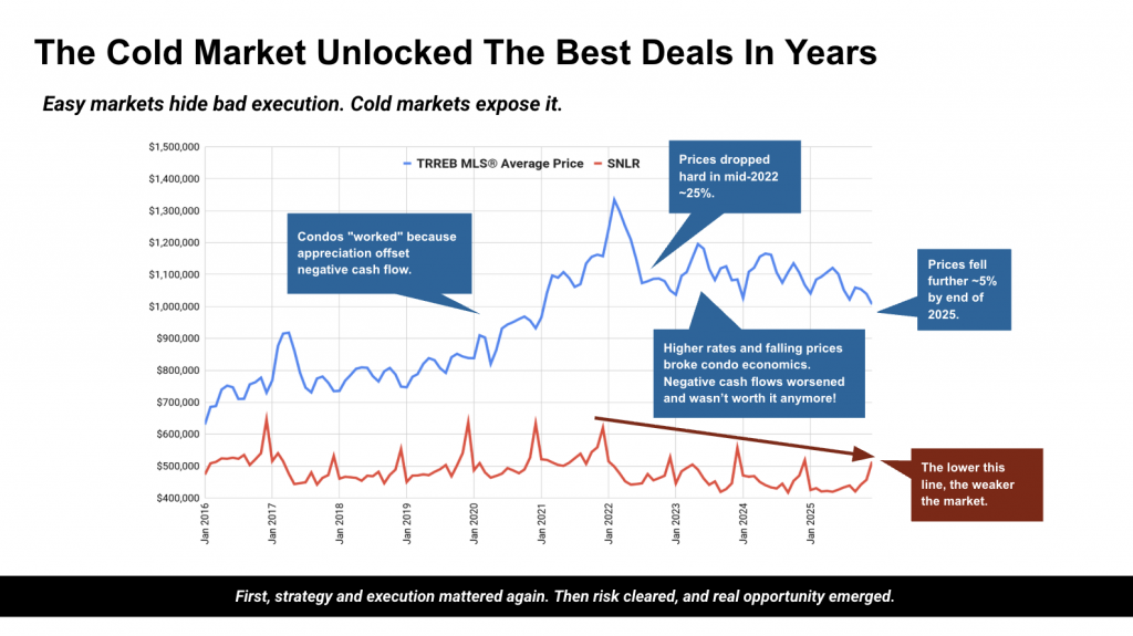 For a long time, investing felt exciting because prices kept going up. Condos, pre-construction, negative cash flow, none of it seemed to matter because appreciation was doing the heavy lifting. Strategy was optional. Discipline was negotiable. Scrolling listings and sold prices became entertainment.