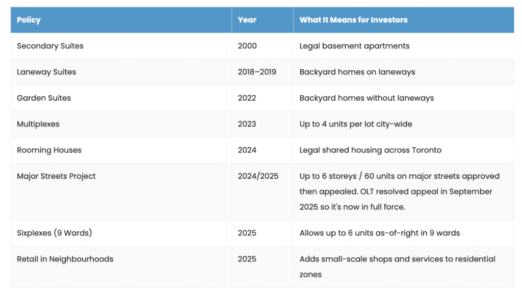 At the same time, housing policy in Toronto changed in a meaningful way. For decades, adding density was nearly impossible. Then suddenly, the rules opened up.