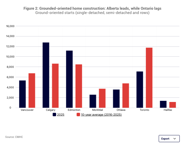 Edmonton has no meaningful land constraints. Unlike Toronto, where geography, zoning history, and high land costs slow supply response, Edmonton developers can and do build when the numbers pencil out. That structural reality means rental markets there are more exposed to supply cycles. When the pipeline runs hot, rents soften. And when rents soften, the income-based valuation that justified your $2.3 million purchase price also softens.