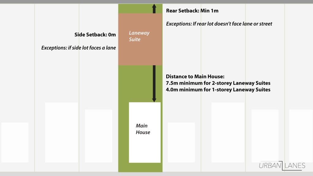A laneway suite is a smaller, self-contained unit at the back of your property, facing a laneway. It’s connected to your main home for utilities like water, sewer, hydro, and gas (no, it cannot be severed).