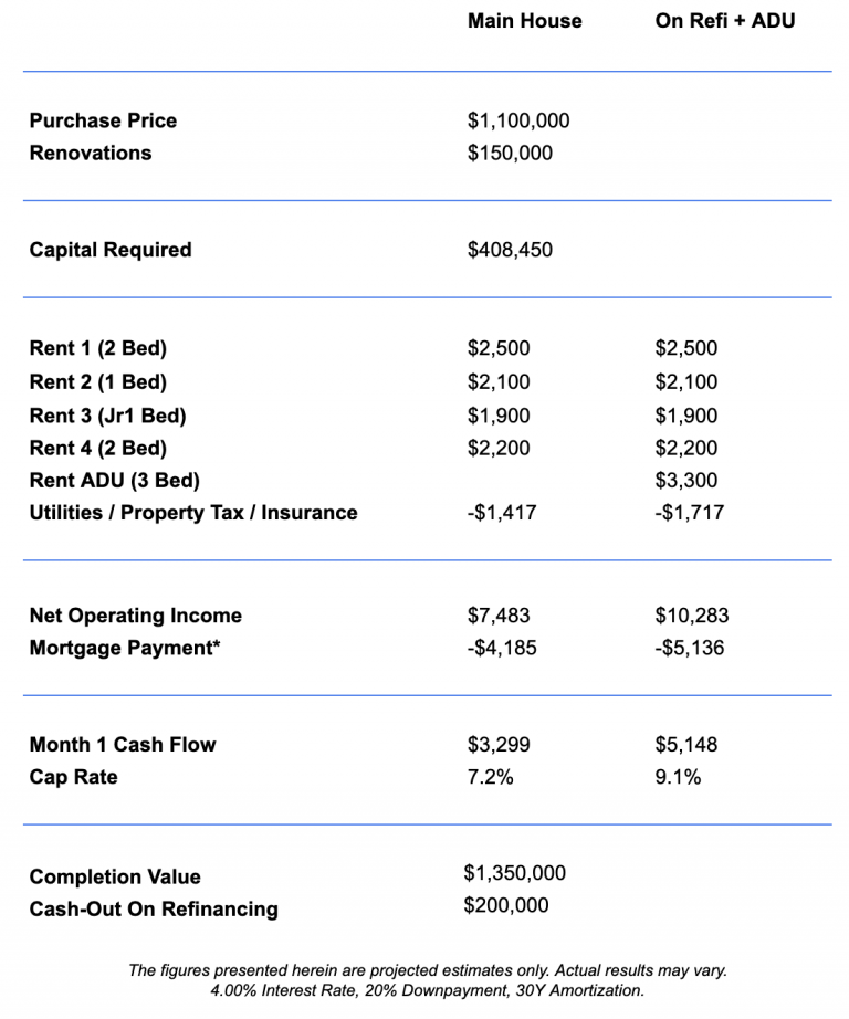 Speed is a huge advantage of conversions. Because you’re working with an existing structure, approvals are faster and construction is more straightforward. That means you can often get the main house rented in just a few months. Cash flow starts coming in while you’re still finishing the rest of the project.