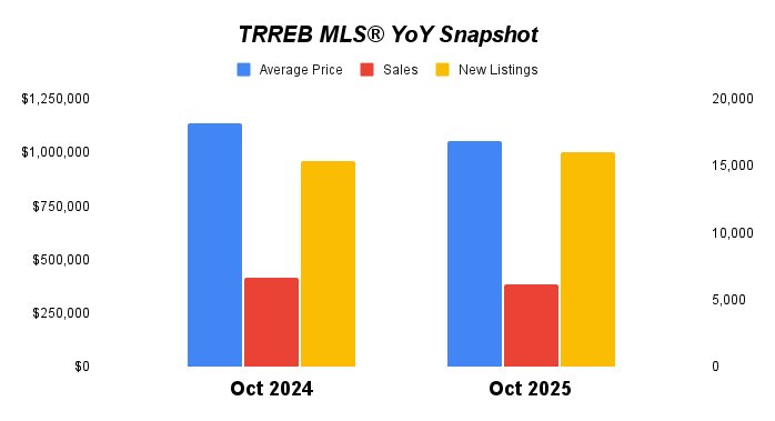 Toronto’s average home price sits just over $1 million as of October 2025 — about 7% lower than last year. That drop may not sound dramatic, but it’s exactly what the market needed. Overheated values have corrected, sellers are more flexible, and buyers have room to negotiate again.