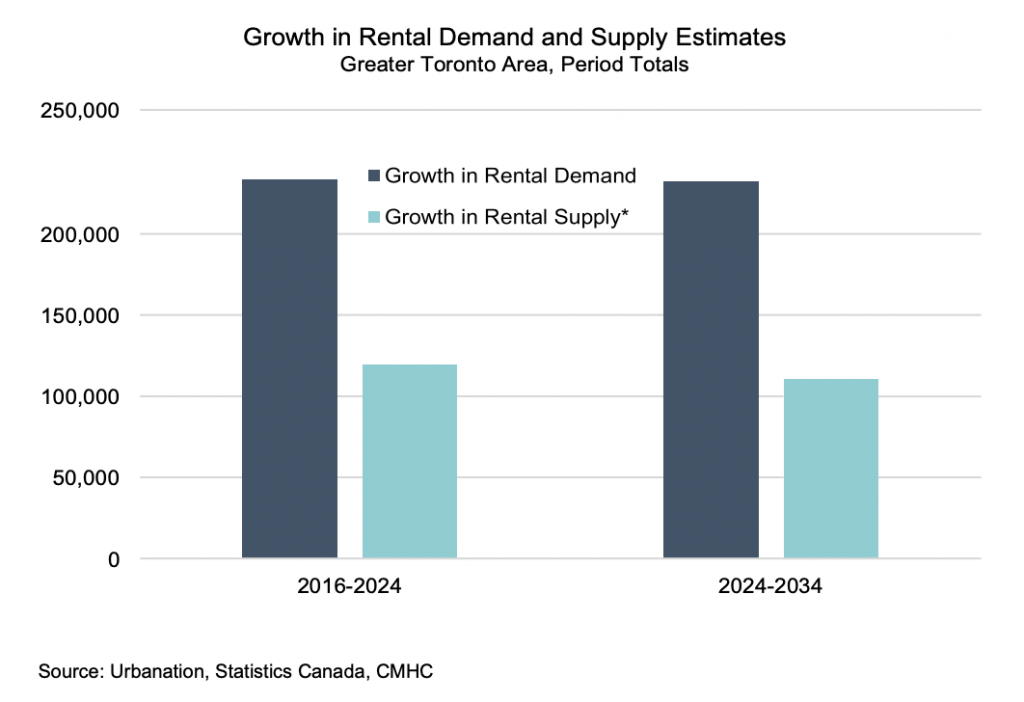 Short-term softness came from new completions flooding the market — not from demand slowing — which means the long-term fundamentals are still strong. Toronto’s renter base continues to grow, and roughly 48% of residents already rent. Add in the projected 230,000 new renter households coming to the GTA over the next decade, and the city simply cannot build fast enough to keep up.